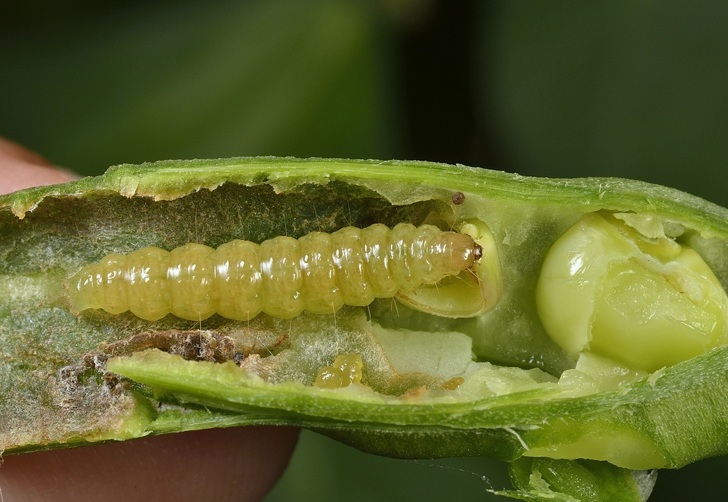 ◦ 유충은 동부, 팥, 녹두 등의 꽃을 식해하거나 꼬투리에 들어가서 가해함