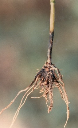 ◦ 감염된 식물은 씨알이 형성되지 않으며, 식물의 기부에 어두운 검은색의 균사체로 인해 부패가 일어남