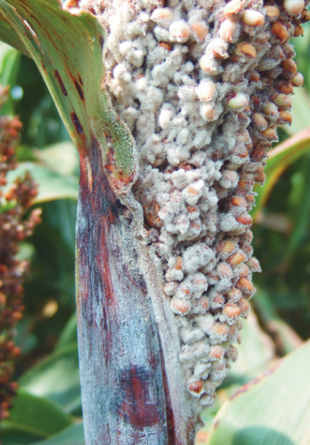◦ 꽃필 때 감염이 시작되어 씨알이 익어가는 동안 계속 이어지며, 일부 균은 가축에 독성을 나타냄