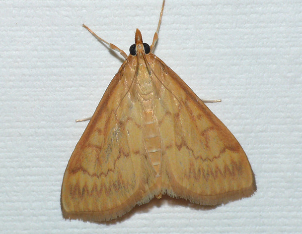 ◦ 기주식물이나 개체에 따라 색체가 약간 달라지나 대체로 머리, 가슴, 앞날개는 황갈색이고 배는 암갈색이며, 날개에는 갈색의 불규칙한 물결 무늬가 있음