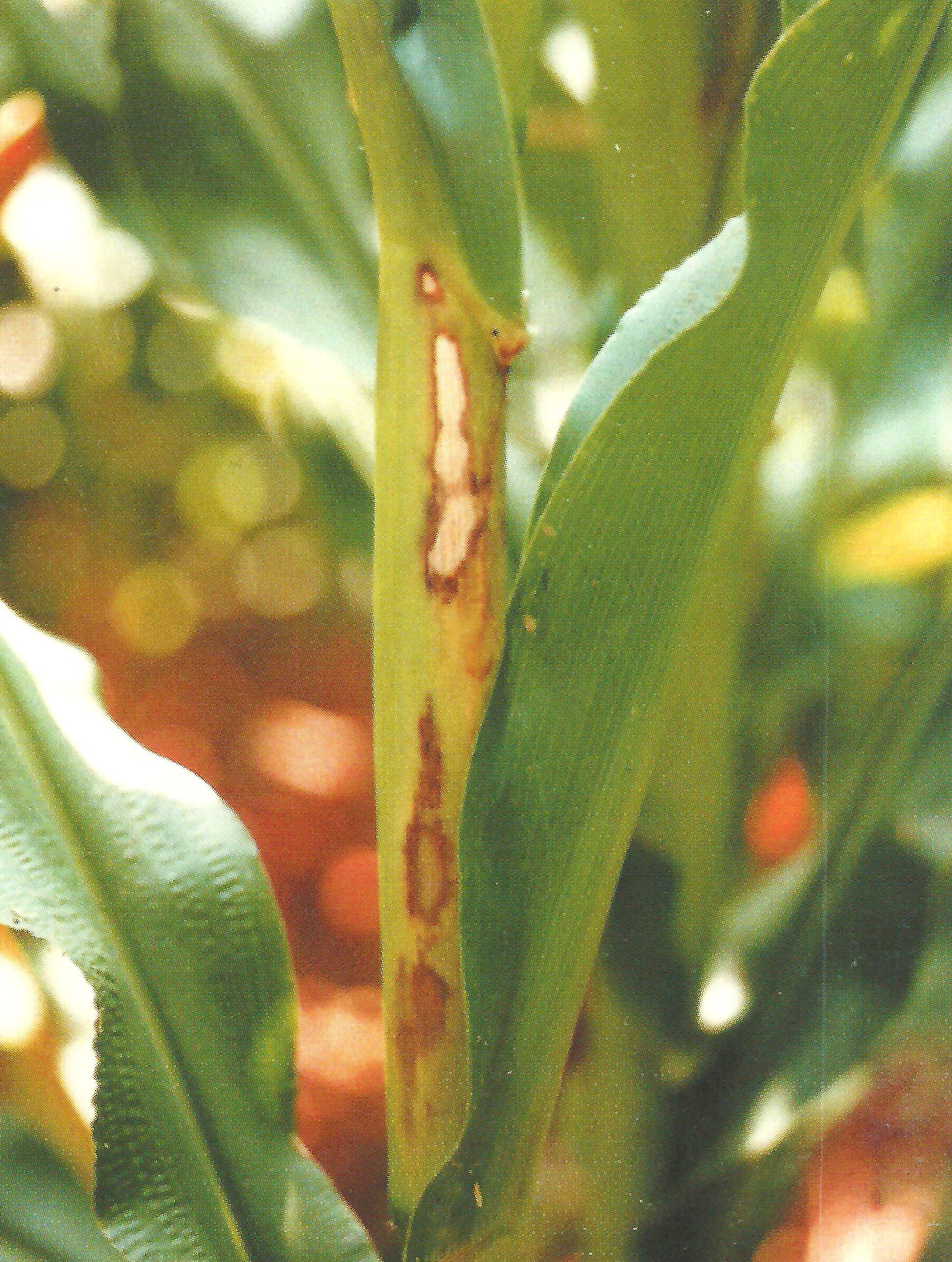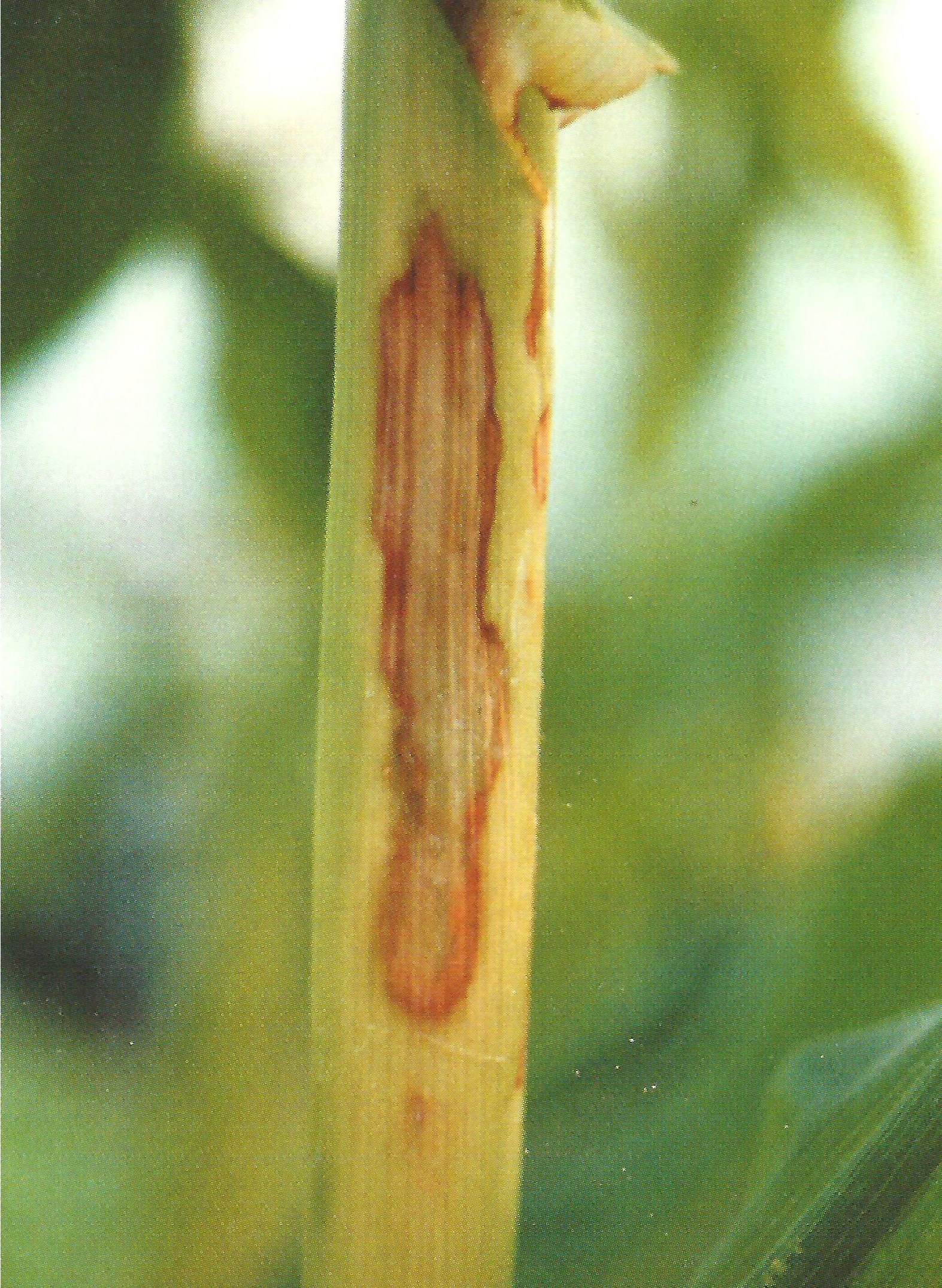 ◦ 초기에는 잎집에 부정형의 작은 점무늬로 나타나고 진전되면 병반이 길게 확대되면서 감염부위가 마른 상태로 썩음