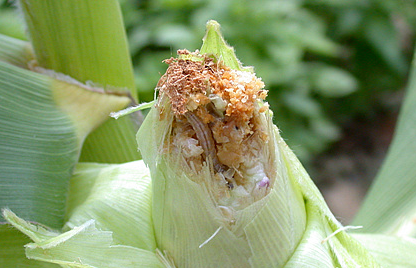 ◦ 광식성으로 잎, 줄기, 가지, 열매 등을 섭식하며, 옥수수 대 속이나 옥수수자루를 먹어 들어가면서 들어간 곳으로 똥을 배출하므로 피해를 쉽게 식별할 수 있음