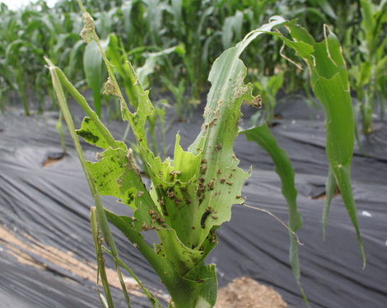 ◦ 방제적기는 2~3령 유충기일 때로 대체로 주 비래일로부터 15~19일 지난 시기이며, 4~5령부터는 약제방제효율이 떨어지므로 조기에 예찰하여 어린 유충기에 방제하되 등록된 약제가 없으므로 조명나방 약제를 이용함