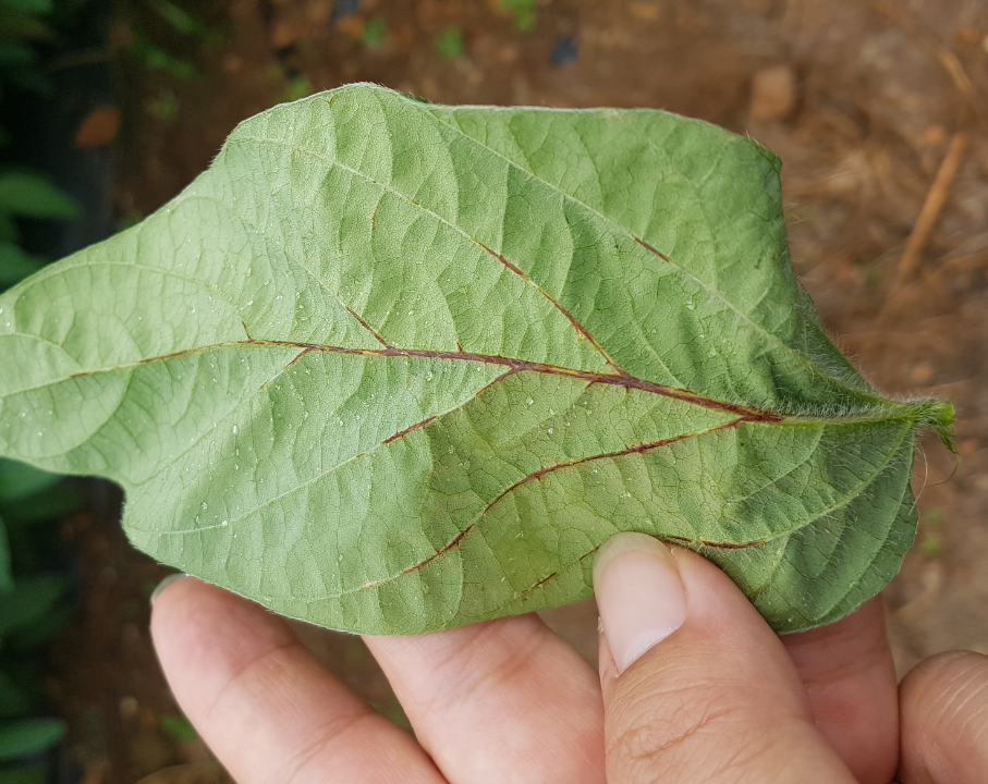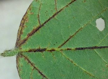 ◦ 엽맥이 노랗거나 진한 갈색으로 보일 수 있으며, 엽맥의 갈변은 특히 아래 잎에서 두드러지나 항상 발생하지는 않음