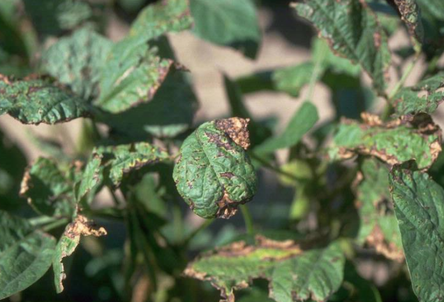 ◦ 잎자루, 줄기, 꼬투리에도 처음에는 수침상의 병반이 형성되며 진전되면 짙은 갈색이나 검은색의 움푹한 병반이 형성됨