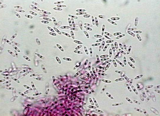 ◦ 자낭균에 속하며, 자낭각은 포도상으로 군생, 최대 500㎛까지 긴 목을 가지며, 자낭은 곤봉형, 얇은 2중막, 크기 25~40×5~10㎛, 자낭포자는 타원형, 1개 격막이 있고 격막부위가 약간 잘록하며, 크기 9~11×2.5~3.5㎛임
