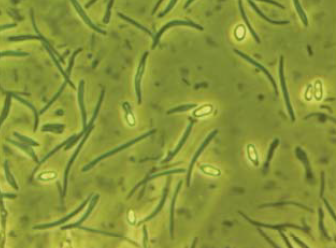 ◦ 병자각은 구형 내지 부정형, 그 안에 α포자(방추형 내지 타원형, 크기 6~10× 2~3㎛)와 β포자(곧거나 굽은 사상형, 크기 20~30×0.5~1㎛) 형성