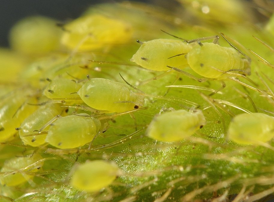 ◦ 잎 뒷면이나 생장점 부근의 어린잎, 줄기에 무더기로 발생하여 즙액을 빨아 먹음