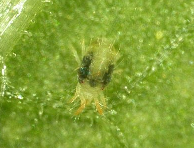◦ 성충의 크기는 암컷이 0.4~0.5mm, 수컷이 0.3mm 정도로 성충은 계절이나 기주에 따라서 체색이 변하는데, 생육기에는 여름형으로 황백색 또는 연두색 바탕에 몸 좌우에 뚜렷한 흑색 무늬가 한 쌍 있음