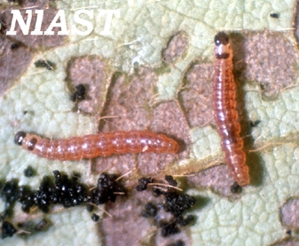 ◦ 잎에서 섭식하던 유충은 다 자라면 땅에 떨어져 땅속에 흙으로 집을 짓고 그 안에서 얇은 막으로 싸인 번데기가 되며, 연간 발생 횟수도 불분명함