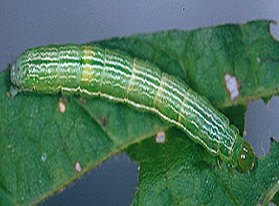 ◦ 등록된 약제가 없으므로 콩나방에 등록된 약제를 이용하여 7월 중․하순에 약액이 아래 잎까지 충분히 묻도록 살포함