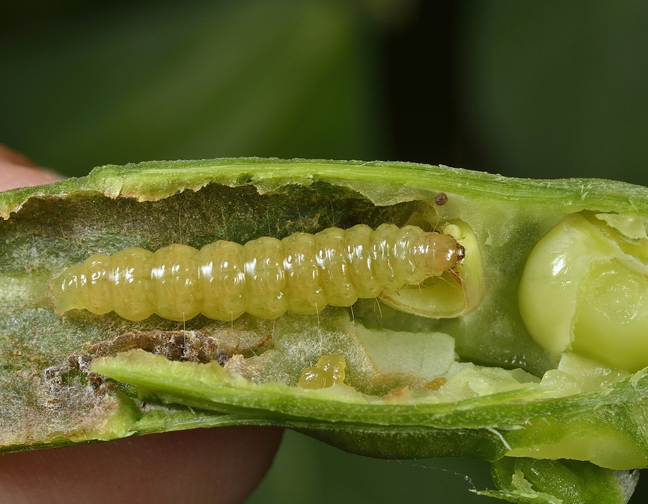 ◦ 유충은 동부, 팥의 꽃을 식해하거나 꼬투리에 들어가서 가해함