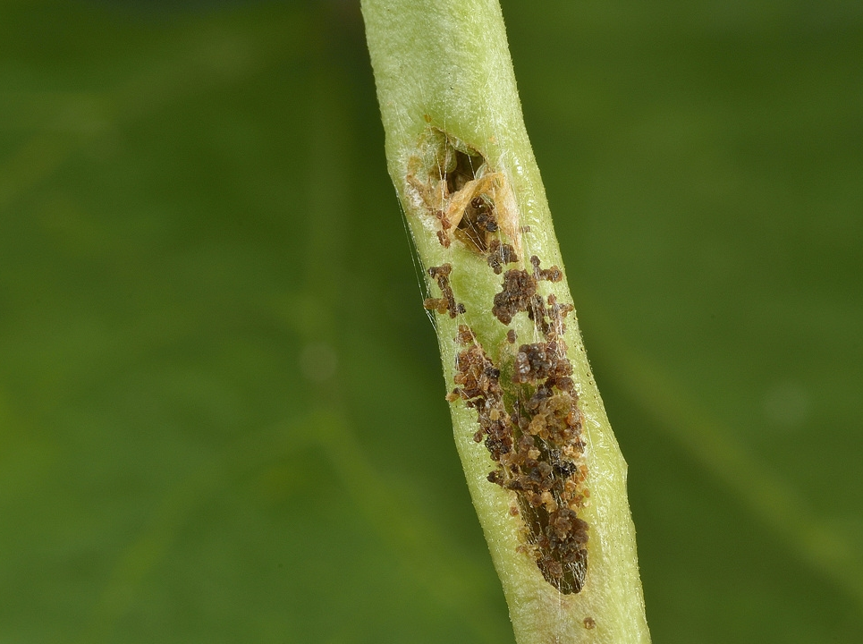◦ 실을 토해 꼬투리를 줄기에 붙인 후 접촉부위를 통해 꼬투리 안으로 들어가서 열매를 먹기도 하며, 산간지나 뽕밭 근처의 밭에서 많이 발생함