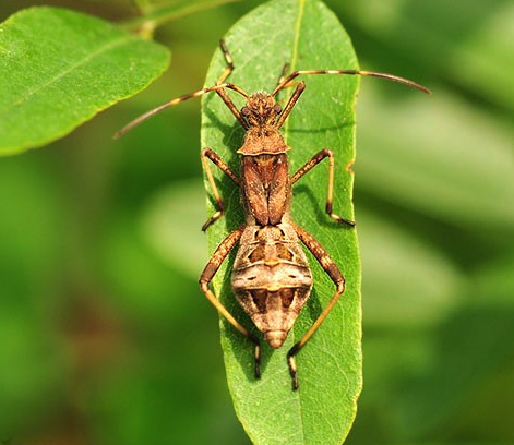 ◦ 성충은 14~17mm 정도의 비교적 큰 해충으로 흑갈색부터 적갈색까지 색채변이가 다양하며, 다리부위에 톱니모양의 가시가 있는 것이 특징임