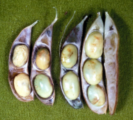 ◦ 꼬투리 속의 낱알 생육이 정지되어 표면에 주름이 생기기도 하며, 하얗게 변색되기도 함