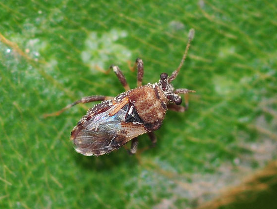 ◦ 길이 2.5~3mm의 작은 노린재로 몸은 연한 흑갈색이고 머리는 작고 암갈색을 띠고 양쪽 측면은 거의 흑색이며, 겹눈은 자루가 있어 옆쪽으로 길게 돌출함