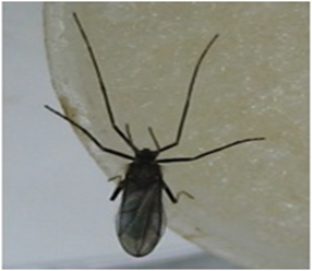 ◦ 성충은 몸길이가 3~4mm로 몸은 회갈색을 띠고 모기와 유사한 모양이나 다리와 촉각이 가늘고 김