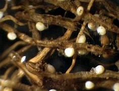 ◦ 선충이 뿌리에 기생하면 근류균에 의한 뿌리혹 형성을 억제하여 질소결핍 현상을 일으키므로 콩의 생육과 수량에 막대한 지장을 초래함