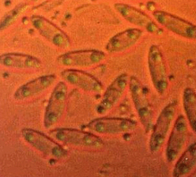 ◦ 불완전균에 속하며, 병자각은 흑색, 구형 내지 편구형, 크기 60~300×50~ 250㎛, 병포자는 α포자(무색, 단세포, 타원형, 크기 4~6×2.5㎛)와 β포자(무색, 단세포, 사상형, 크기 12~22×1.8~2㎛) 형성