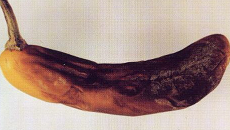 ◦ 과실에 처음에는 부정형의 검은 반점으로 나타나고 진전되면 과실 대부분이 검게 변하면서 썩음