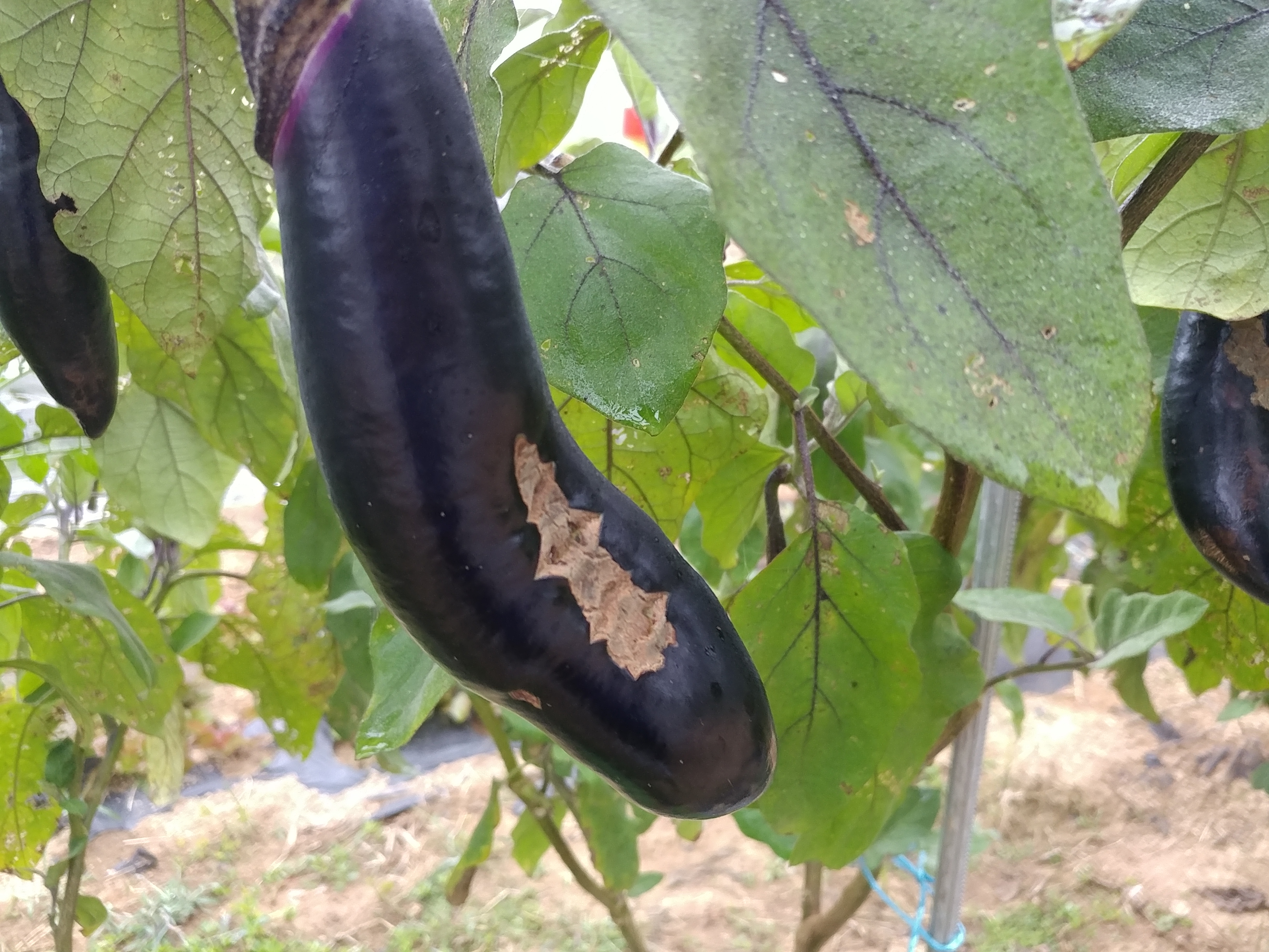 ◦ 피해 부위는 그물모양의 규칙적인 식흔을 남기고 표피만 남으므로 흰색으로 보이며, 이빨자국이 뚜렷하나 점차 갈색으로 변하고 구멍이 생김