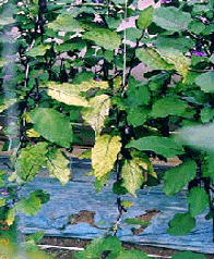 ◦ 8월에 아주심기를 한 모종은 다음해 3월 이후 초세가 떨어지고 뿌리의 능력이 저하되면 뿌리의 동화능력 부족으로 인한 흡수 능력이 저하되거나 토양 내 수분 과다로 양·수분의 흡수 능력이 저하할 경우 나타남