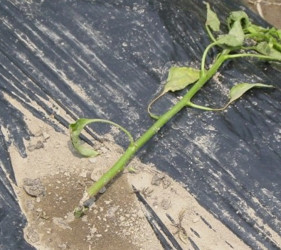 ◦ 주로 유묘기에 잘록 증상으로 나타나며, 병든 묘는 잘 쓰러지고 말라 죽음