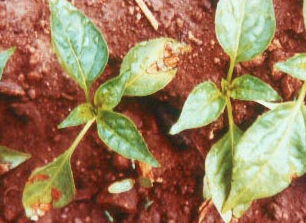 ◦ 줄기는 처음 갈색 내지 암갈색의 원형 내지 타원형의 반점이 형성되어 조금 오목해지면서 점차 확대되어 심하면 묘 전체가 말라 죽음