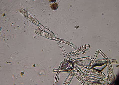 ◦ 분생포자는 공기전염 되고 건조한 조건하에서는 80일간 전염원 능력이 유지되며, 발병적온은 15~28℃임