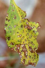 ◦ 반점의 주변은 황색의 무리가 생겨 노화가 촉진되어 낙엽하게 됨