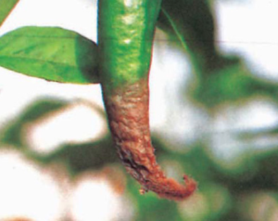 ◦ 과실의 감염은 주로 꽃이 달린 부위에서부터 시작되므로 과실이 커지면서 꽃이 잘 떨어지지 않는 품종에서 발생이 심함