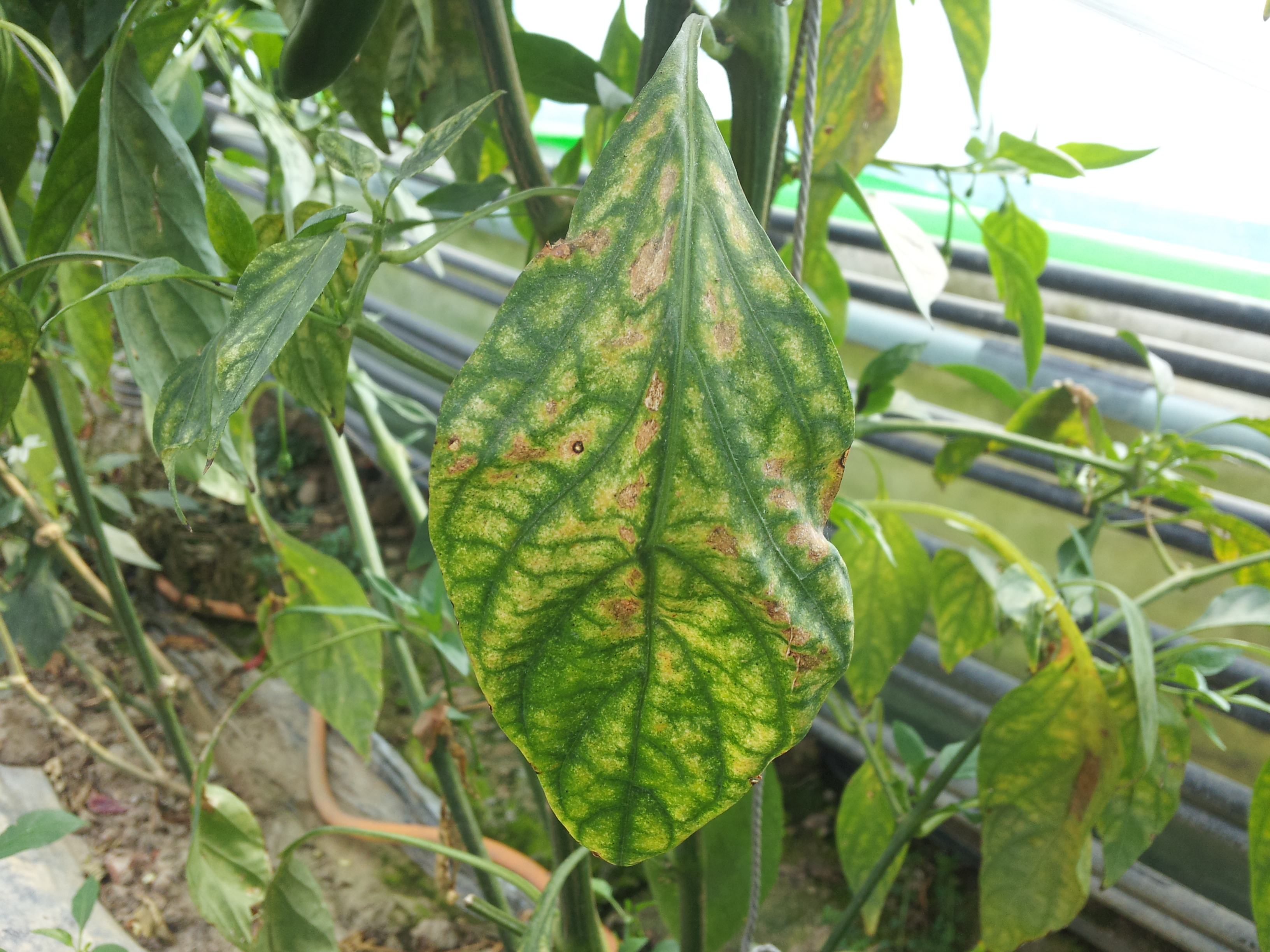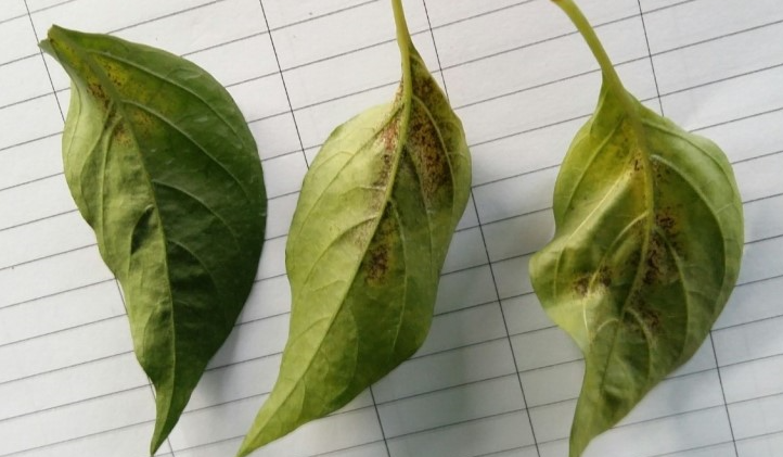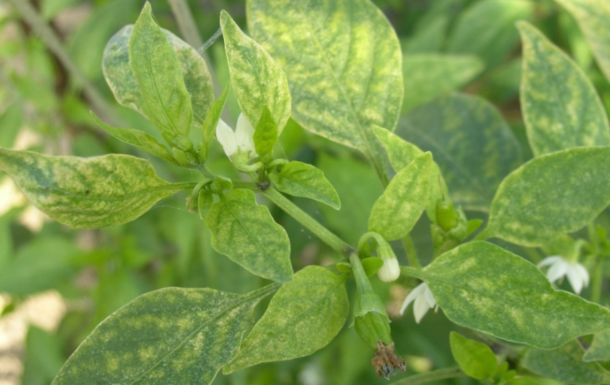 ◦ 잎 뒷면에서 세포 내용물을 빨아 먹어 잎 표면에 작은 흰 반점이 무더기로 나타나고 진전되면 잎이 갈색으로 변하면서 말라죽고 조기 낙엽됨
