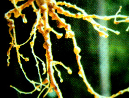 ◦ 뿌리에 작고 둥근 혹 또는 염주 모양의 혹을 만들며, 그 혹 속에 잔뿌리가 많이 생김