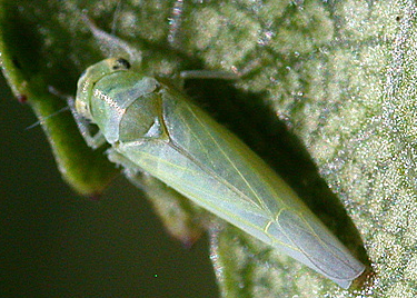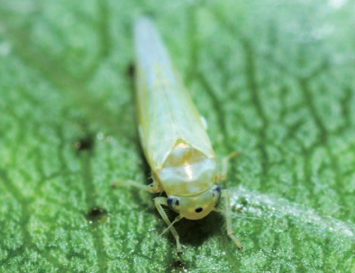◦ 성충은 몸길이가 약 3.2mm로 전체적으로 초록색을 띠고 머리 정수리 부분에 검은 점무늬가 있음
