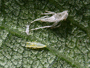 ◦ 약충은 연두색 바탕에 주황색 무늬가 있음