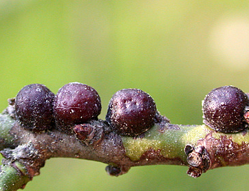 ◦ 부화한 약충이 잎의 뒷면으로 이동하여 엽맥을 따라 흡즙하다가 낙엽 전에 가지로 돌아와 고착하여 월동함