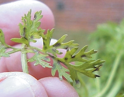 ◦ 주로 생육 후기에 발생하기 시작하는데, 비료가 부족하고 기온이 높으며, 건조한 상태가 오래 지속되면 많이 발생함