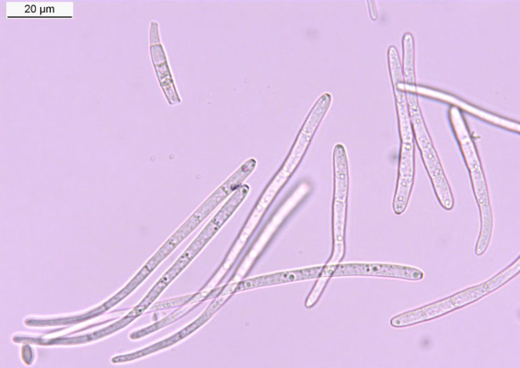 ◦ 불완전균에 속하며, 분생자경은 다발로 형성, 담갈색, 크기 35~50×3~4㎛, 분생포자는 무색, 막대모양, 곧거나 약간 굽은 모양, 2~8개 격막, 크기 40 ~142×2~4㎛임