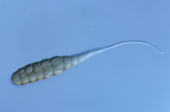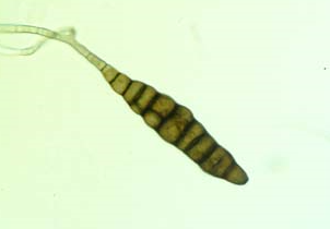 ◦ 불완전균에 속하며, 분생자경은 담갈색 내지 황갈색, 곧거나 약간 굽은 모양, 길이가 최고 80㎛, 분생포자는 갈색 내지 암갈색, 단독 혹은 2개의 연쇄상으로 형성, 7~11개 횡격막과 1개 내지 여러 개의 종격막, 반곤봉형, 부리(beak)가 몸체의 3배까지 김, 크기 100~450×16~25㎛임