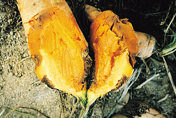 ◦ 처음에 뿌리의 상부에 수침상의 담갈색 병반으로 나타나고 진전되면 뿌리 아래쪽으로 썩어 내겨가며, 병든 뿌리는 전체가 물러 썩고 악취가 남