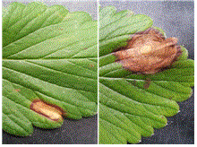 ◦ 잎에는 꽃잎이 떨어져 묻어 있는 부분에서부터 감염이 시작됨