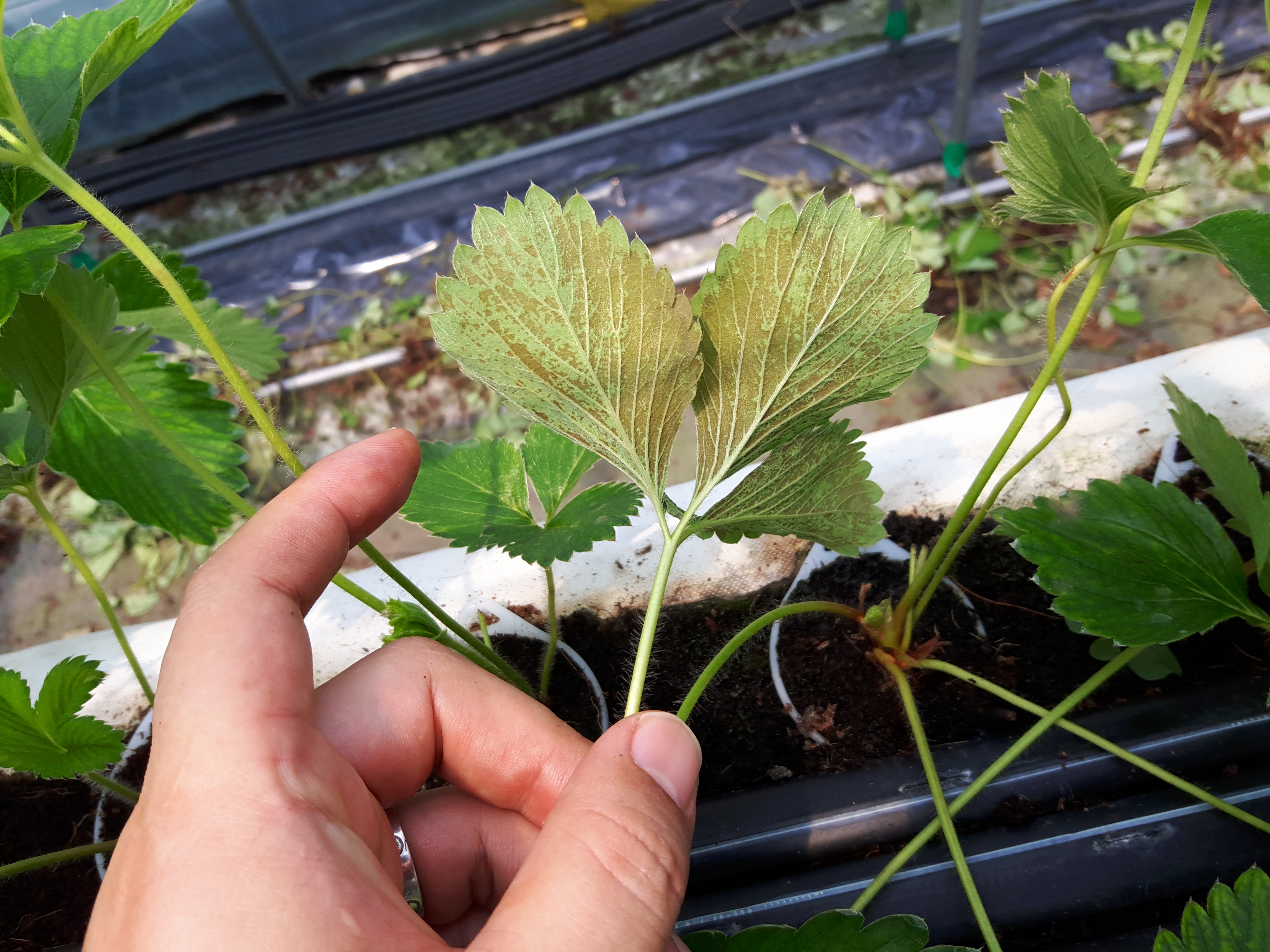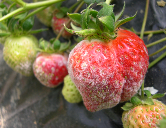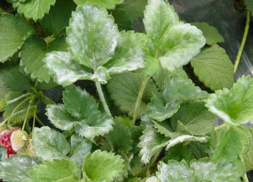 ◦ 잎에서는 잎 뒷면에 흰색의 균총으로 나타나고 과실에는 흰가루를 뿌려 놓은 것 같은 증상으로 나타남