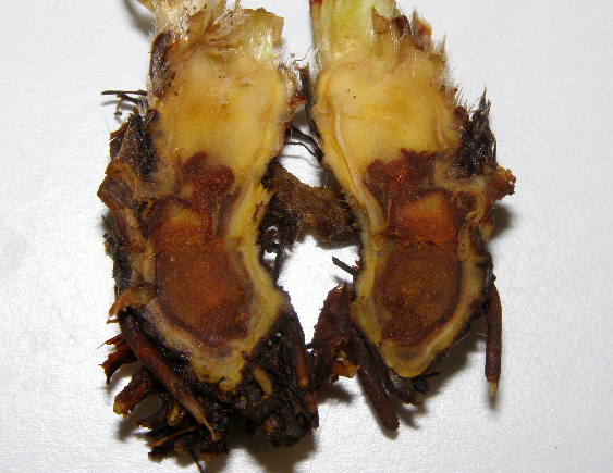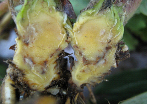 ◦ 병원균은 식물체의 가는 뿌리나 상처를 통해 침입하며, 서늘한 지방에서는 병발생이 적고 감염되어도 병증상이 나타나지 않다가 수확기에 기온이 올라가면 증상이 나타나기도 함