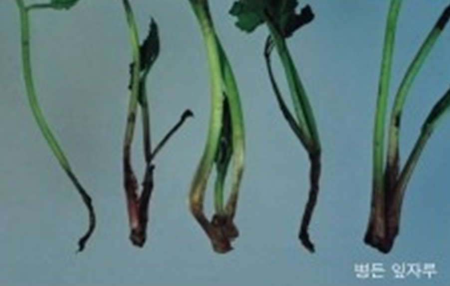 ◦ 심하게 병든 그루는 줄기와 잎자루가 물러 썩어 잘 부러지고 후에 전체적으로 썩게 됨