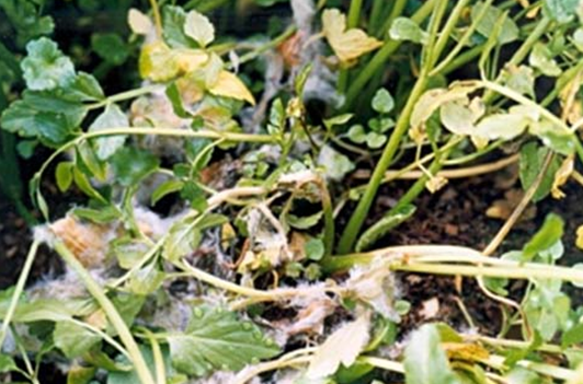 ◦ 감염부위에는 흰 균사가 자라고 물러 썩으며, 후에 부정형의 검은 균핵이 형성