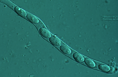 ◦ 자낭균에 속하며, 균핵은 흑색, 부정형, 크기 1.2~13.5×1~6.3mm, 자낭은 곤봉형 내지 원통형, 단일막, 크기 120~200×8~11㎛, 자낭포자는 무색, 단세포, 타원형, 크기 10~18×5~8㎛임
