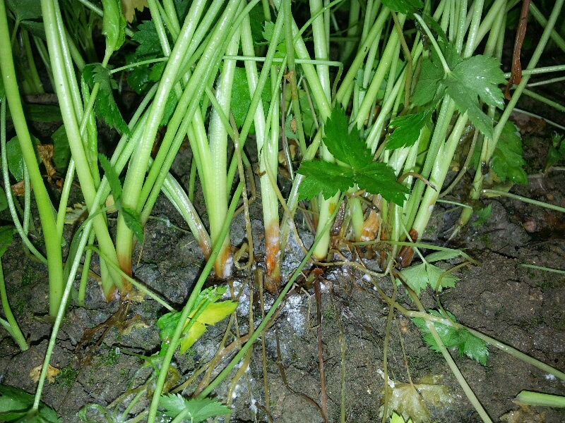 ◦ 기온이 높고 건조해지면 감염부위가 말라 가늘어지며, 심하게 발생하면 병원균의 흰 균사체가 줄기 지제부에서 쉽게 관찰됨