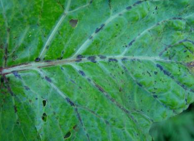 ◦ 처음에는 잎 가장자리가 황색으로 변하고 엽맥이 흑색으로 변함