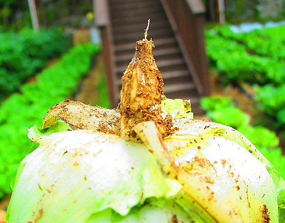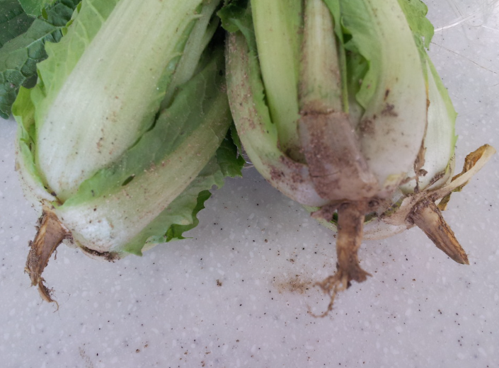 ◦ 병든 그루는 생육 후기에 이르러 결구가 불량하게 되고 바람 등의 물리적인 힘에 의해 가느다랗게 남아 있는 뿌리가 쉽게 부러져 똑딱병이라 부름