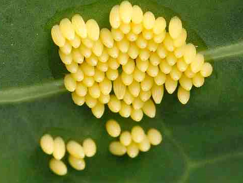 ◦ 성충은 잎 뒷면에 알을 낳고 알에서 깨어난 애벌레는 바로 잎을 가해하며, 봄부터 가을까지 각 충태를 볼 수 있음